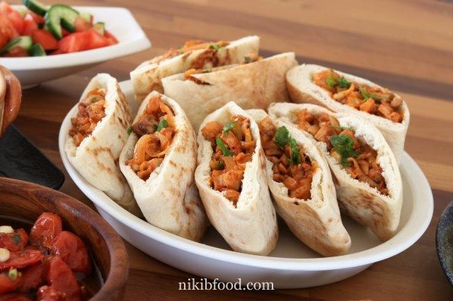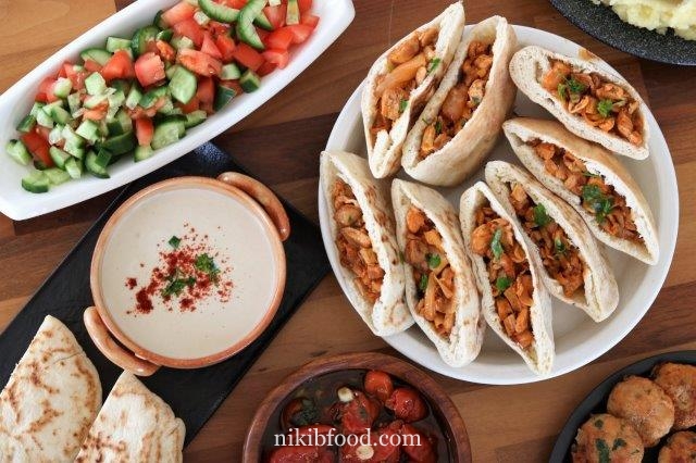You can make this the day before and just before serving warm the meat and fill the pita breads.